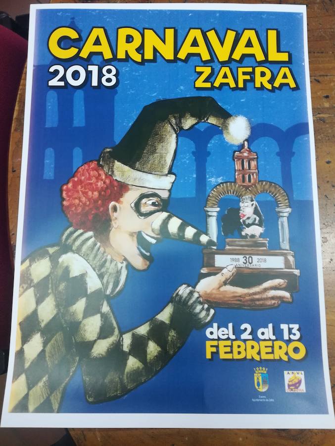 En el cartel deberá figurar la leyenda «Carnaval Zafra 2019», «Del 1 al 5 de marzo», además de según la bases «los logotipos del Ayuntamiento y del Carnaval de Zafra»