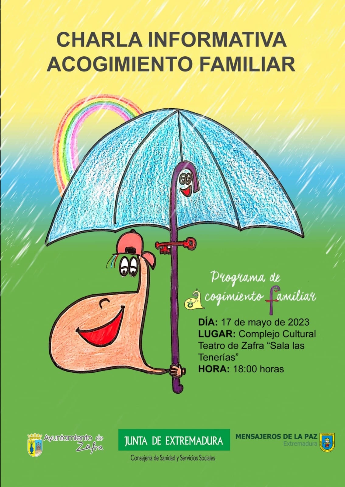 La Junta de Extremadura, el Ayuntamiento de Zafra y Mensajeros de la Paz han organizado una charla informativa sobre el Acogimiento Familiar en nuestra región. Será hoy miércoles 17 de mayo, a las 18 horas en la sala Las Tenerías del Complejo Cultural Teatro de Zafra.