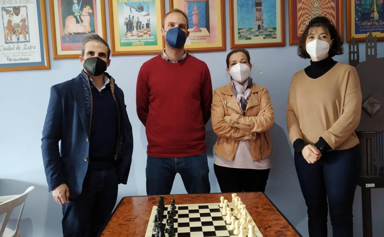 La primera teniente de alcalde, Nieves Peña, y la concejala de Participación Ciudadana y Deportes, Toni Toro, han inaugurado hoy lunes 27 de diciembre este nuevo espacio, junto a Pedro Guerrero, presidente de la Federación Extremeña de Ajedrez, y Daniel Gragera, que han agradecido al consistorio su cesión para seguir dando aún más visibilidad a su deporte, el ajedrez.