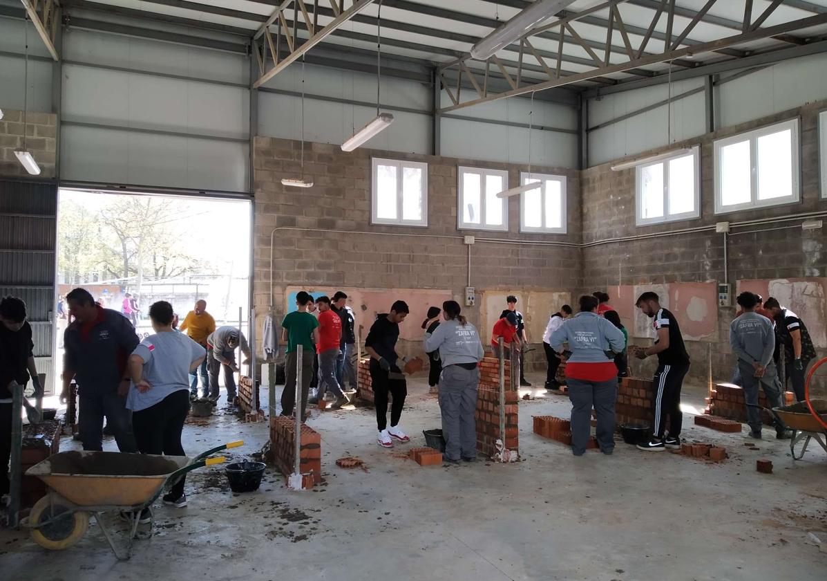 Según ha detallado Rubén García, uno de los monitores de la escuela profesional, en la especialidad de albañilería han realizado la ejecución de fábrica de medio pie con ladrillos de hueco doble con mortero de cemento y ejecución de muro de fábrica de ladrillo de a pie con ladrillo perforado a tizón. Así, el alumnado ha tenido un acercamiento a las herramientas manuales de construcción de albañilería y morteros simples de arena y cemento. Con respecto a la especialidad de jardinería, se han ejecutado cuatro prácticas que incluyen las labores más comunes de mantenimiento: el corte y la siembra de la semilla del césped, recorte de setos y poda de ramas de árboles con pértigas.