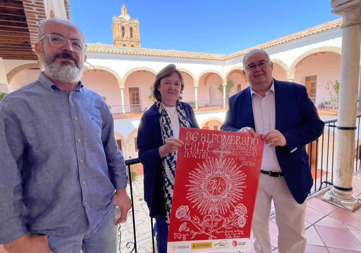 El cartel anunciador de la actividad ha sido presentado en el ayuntamiento por parte del alcalde de Zafra, Juan Carlos Fernández; el secretario de la asociación, Miguel Ángel Domínguez; y la vocal, María Luisa Reynolds.