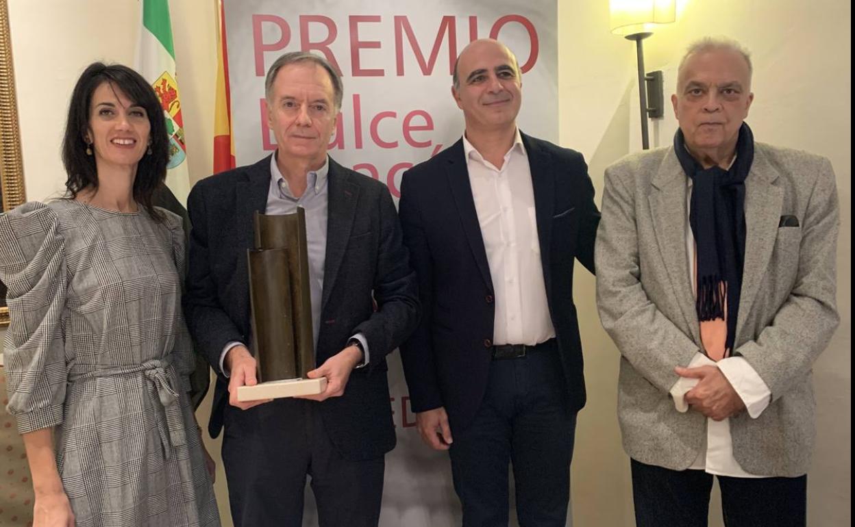 Justo una semana después de conocerse el fallo del jurado, el escritor Antonio Soler ha recogido en el Parador de Turismo de Zafra el XIV ... Premio Dulce Chacón de Narrativa Española por su novela 'Sur', un galardón dotado este año con 9.000 euros y la escultura 'El abrazo' de Iñaki Martínez Sáez.