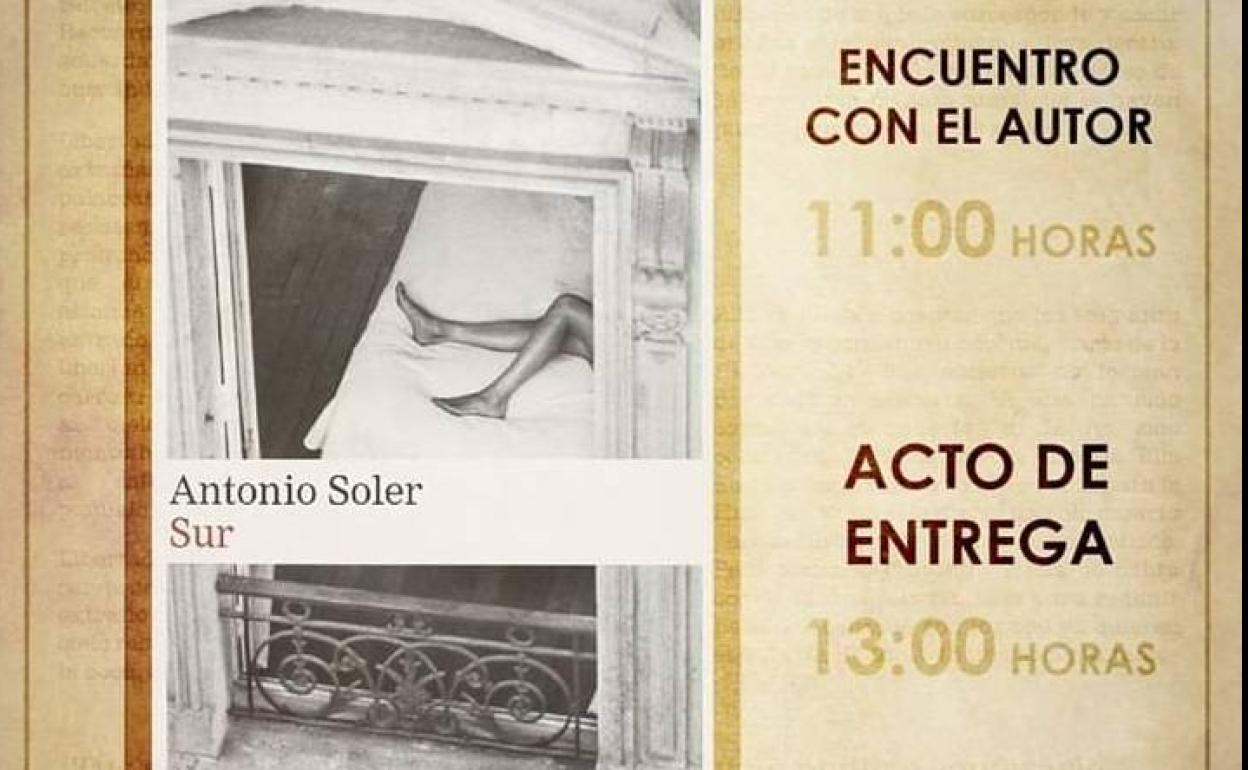 El acto de entrega del XIV Premio Dulce Chacón de Narrativa Española a Antonio Soler por 'Sur' tendrá lugar este sábado 30 de noviembre a las 13.00 horas en el Parador de Turismo Duques de Feria de Zafra. Previamente hay previstas dos actividades: a las 11.00 habrá un encuentro con el autor para hablar de su obra, y después una firma de ejemplares.