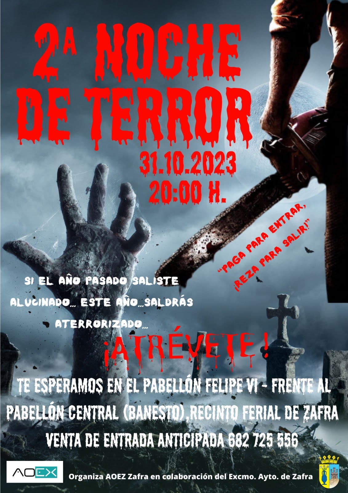 Los voluntarios de la asociación harán pasar una noche de miedo a todos los que se acerquen al Pabellón Felipe VILa Asociación Oncológica de Extremadura (AOEX), con la colaboración del Ayuntamiento de Zafra, h organizado para este martes día 31 de octubre su segunda 'Noche de Terror', una experiencia que inició con gran éxito, tanto por la puesta en escena como por la participación de público.