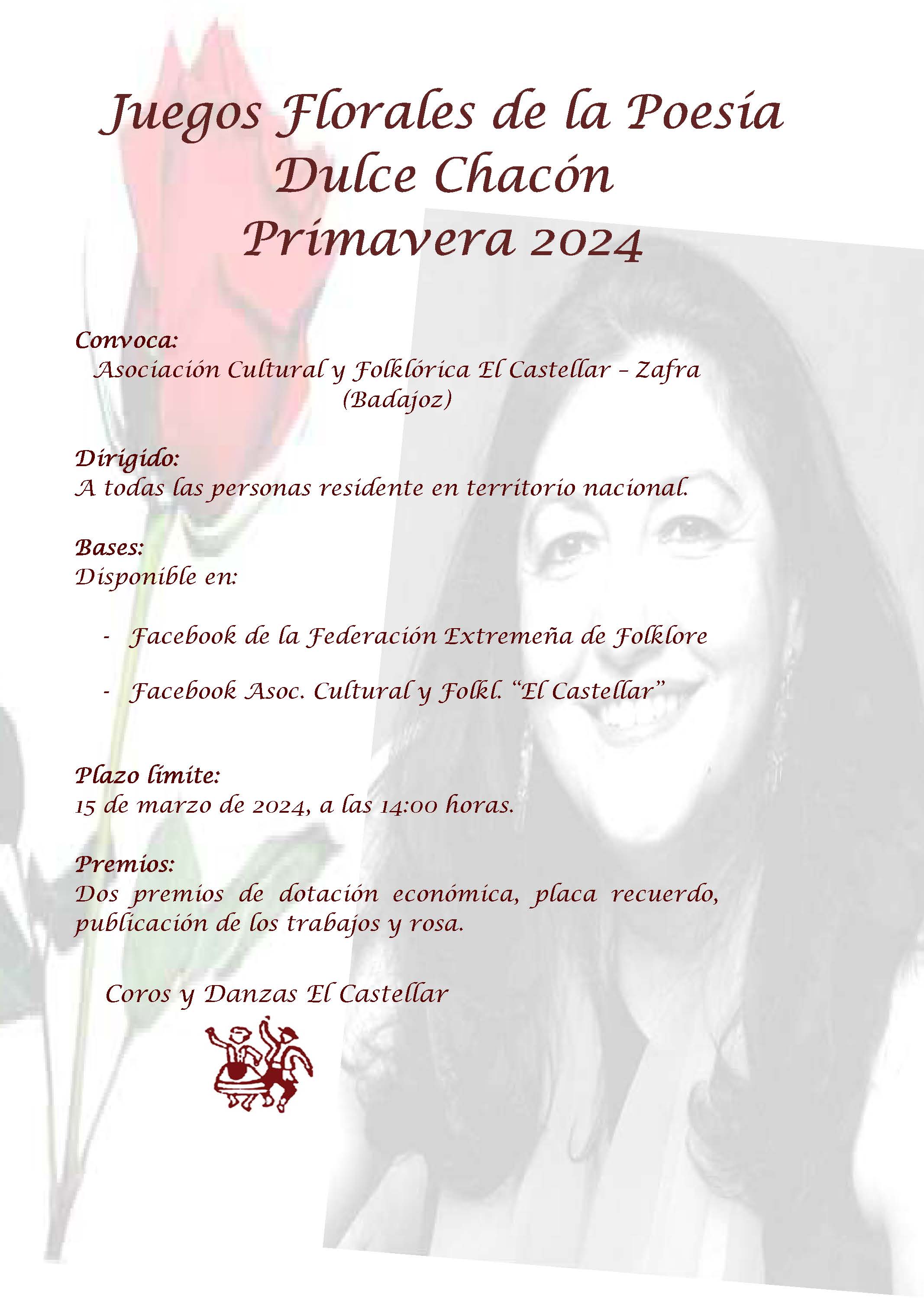 La Asociación Cultural y Folklórica El Castellar ha convocado una nueva edición de los Juegos Florales de la Poesía 'Dulce Chacón'.