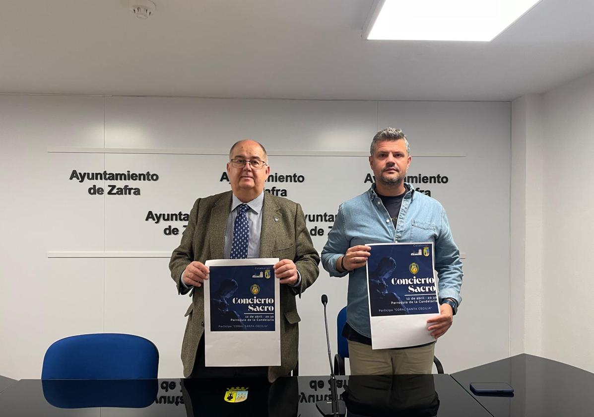 La Banda Música de Zafra, con la participación de la Coral Santa Cecilia, ofrecerán un concierto de música sacra el próximo sábado, 12 de abril, a las 20.30 horas, en el Templo Parroquial de la Candelaria.