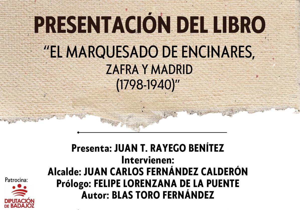 El acto será conducido por Juan Tomás Rayego Benítez, y contará con las intervenciones del alcalde de Zafra, Juan Carlos Fernández Calderón; el historiador Felipe Lorenzana de la Puente se referirá al prólogo; y después Blas Toro profundizará en su trabajo.