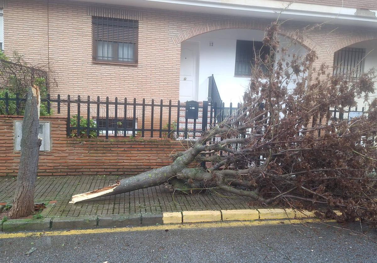 El paso de la borrasca Leonardo, que mantendrá activada hasta este jueves la alerta de nivel amarillo en toda Extremadura y Naranja en el Norte de Cáceres por lluvias y vientos, también ha causado distintos incidentes en la localidad.