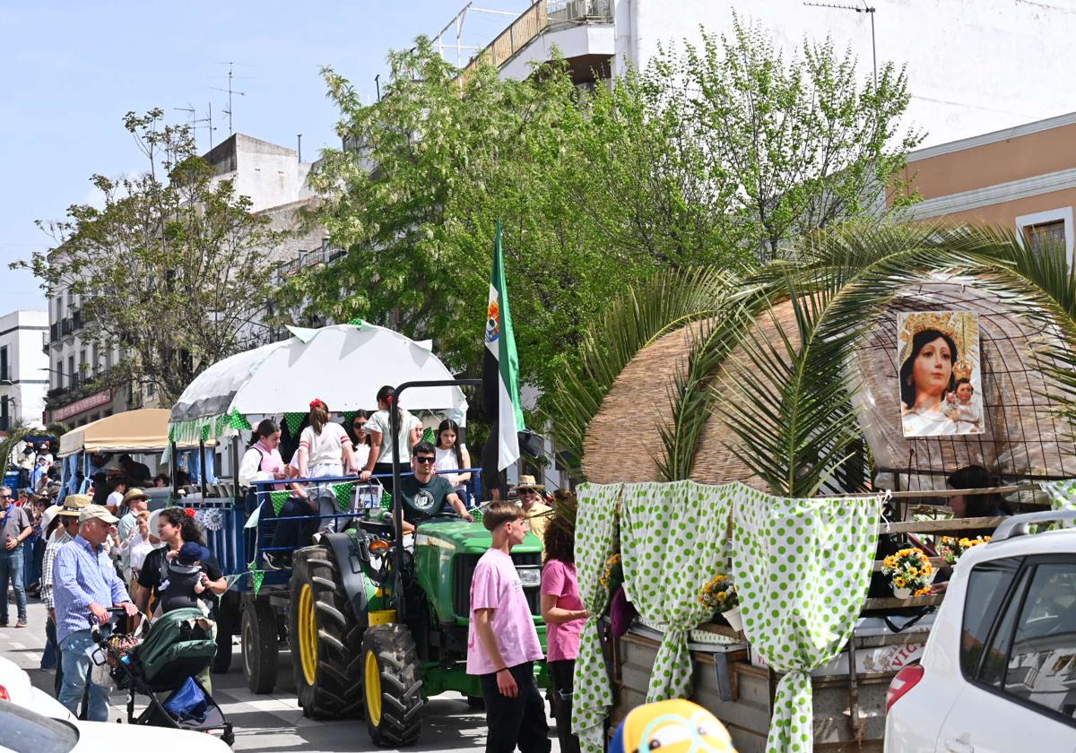 Sobre las 15 horas, partió la comitiva hacia la ermita, formada por el Simpecado, caballistas, tractores con carrozas, furgonetas, coches con remolques y numerosos peregrinos a pie. El recorrido discurrió por la Avenida Antonio Chacón, Plaza de España, Campo Marín y Almendro hasta llegar al santuario. Numeroso público no quiso perderse el paso de la comitiva.