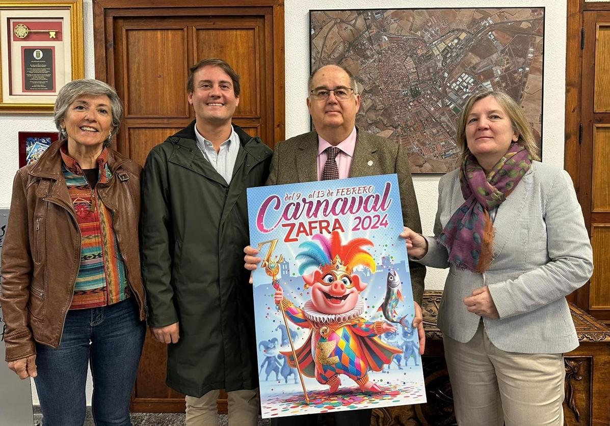 Zafra se prepara para celebrar del 9 al 13 de febrero su Carnaval. Este jueves 1 de febrero se ha presentado en el ayuntamiento el cartel ganador del Carnaval 2024, obra de Juan Diego Ingelmo, natural de Castelló. El concejal de Juventud y Festejos, Alejandro Carvajal, ha recordado que se ha recuperado el concurso para elegir el cartel anunciador. Se han presentado 10 trabajos de gran nivel, y se tiene previsto realizar una exposición con todos ellos.