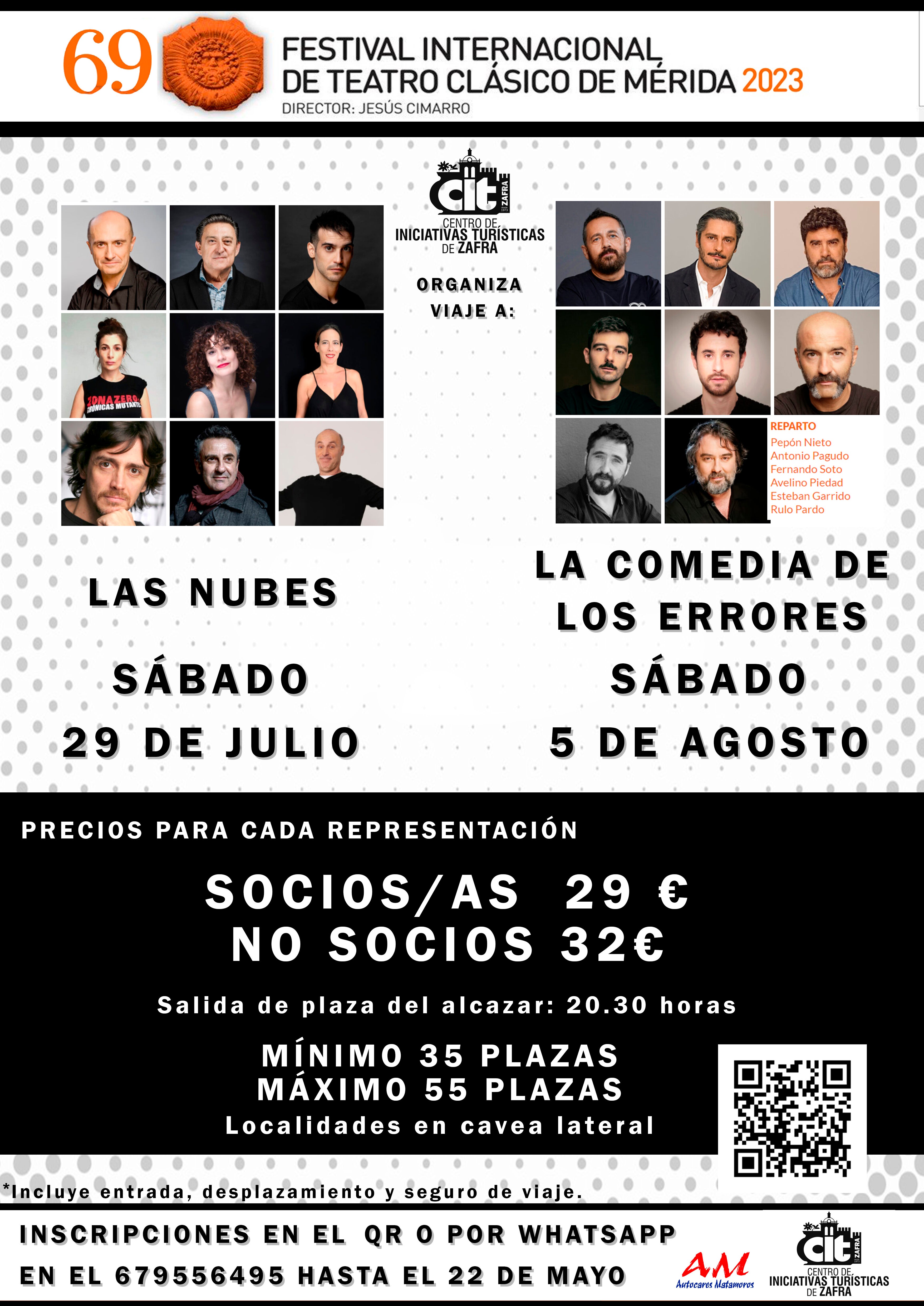 El Centro de Iniciativas Turísticas de Zafra (CIT) organiza dos salidas culturales a la 69 edición del Festival Internacional de Teatro Clásico de Mérida, una en el mes de julio y otra en agosto.