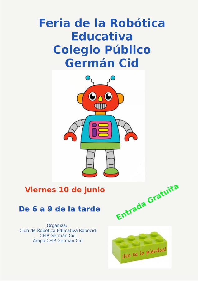 El colegio Germán Cid celebrará este viernes 10 de junio su primera Feria de la Robótica Educativa entre las 18.00 a 21.00 horas.