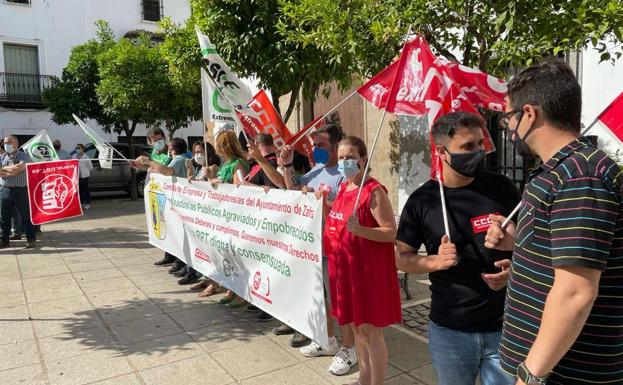 Los trabajadores del Ayuntamiento de Zafra han vuelto a concentrarse este miércoles, 16 de junio, ante las puertas del Consistorio, convocados por el Comité de ... Empresa (CCOO, CSIF y UGT) para explicarles la situación en la que se encuentran respecto a la negociación de la nueva Relación de Puestos de Trabajo (RPT) y el pago de las retribuciones no devengadas en las nóminas desde el mes de marzo.
