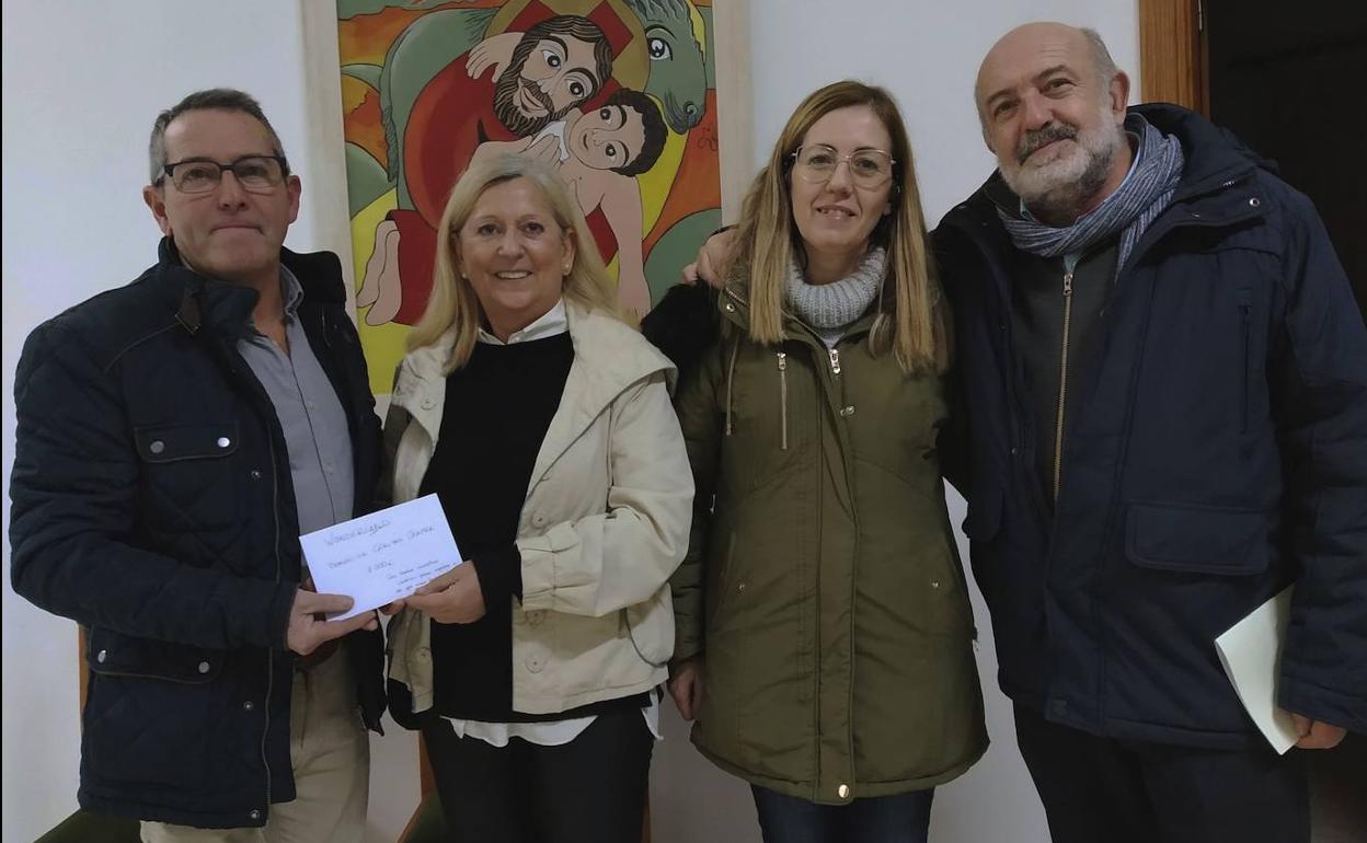 La recaudación ha sido de 1.000 euros que han sido entregados por parte de la secretaria y actriz de la compañía, Mari Carmen Muñoz, y el actor Vicente Domínguez a Inmaculada Pimienta, coordinadora de alimentos de Cáritas; y a José Ángel Losada, párroco de Zafra. La entrega se ha efectuado en el Centro Parroquial Don Joaquín Macarro este jueves 22 de diciembre.