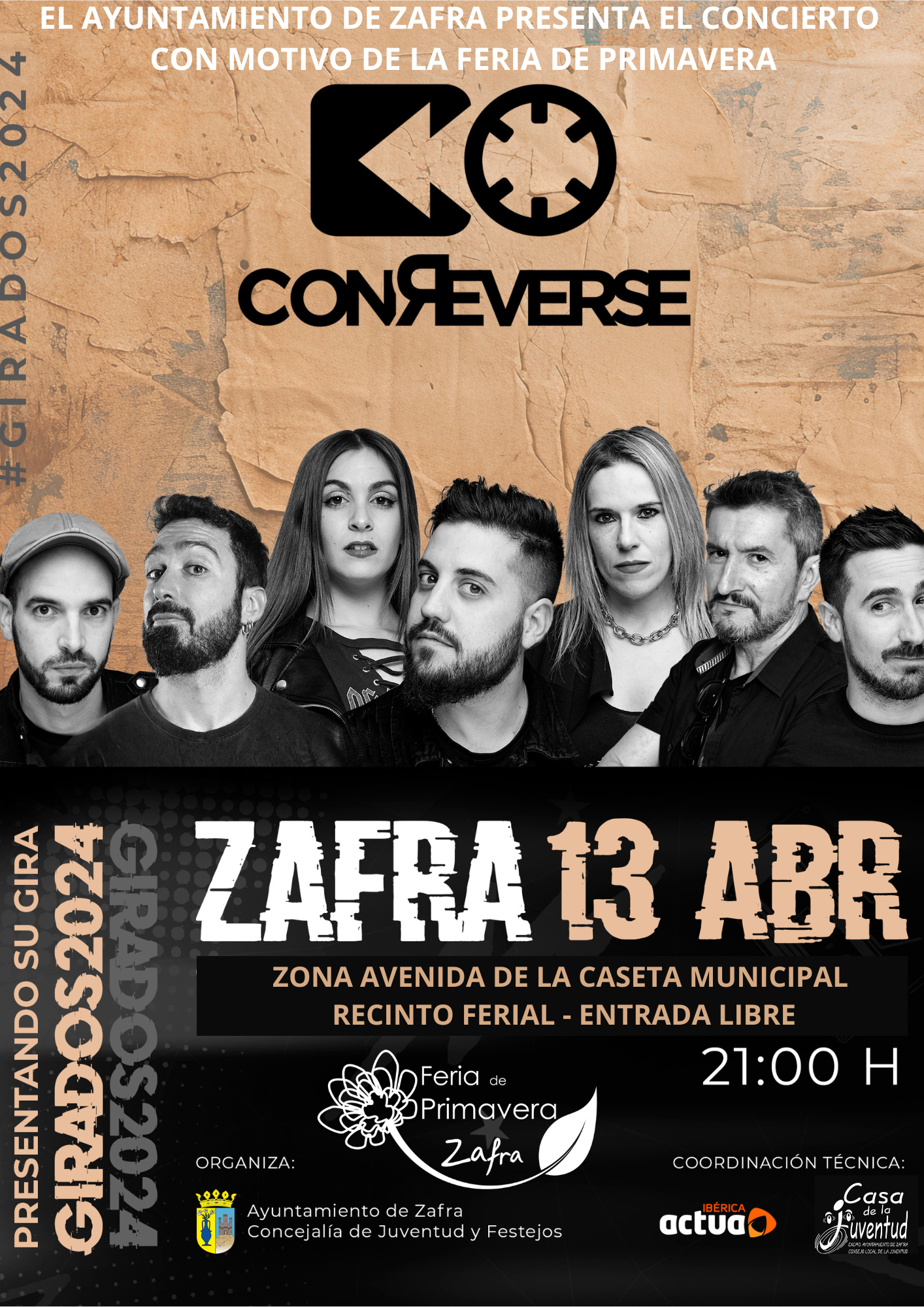 El grupo ofrecerá tres horas de concierto al aire libre con los mejores temas de los últimos 40 añosLa Feria de Primavera incluye en su programación un concierto gratuito del grupo Conreverse, que tocará el sábado, 13 de abril, a partir de las 21 horas al aire libre, en la zona avenida de la Caseta Municipal en el recinto ferial.