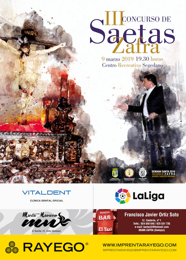 Además, los dos primeros clasificados tendrán que cantar ante las imágenes de la Semana Santa zafrense el día que consideren y que esté consensuado con la organización, los ganadores cantarán desde el balcón del Ayuntamiento o desde el lugar que se considere oportuno.