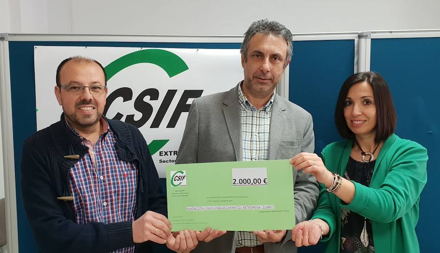 El sector de Educación de CSIF Extremadura, ha hecho entrega de un cheque solidario de 2.000 euros a la Fundación Oncológica Infantil Extremeña ' Ícaro', como contribución al trabajo que realizan de velar exclusivamente por la integridad de los niños que tienen cáncer y de sus familias.