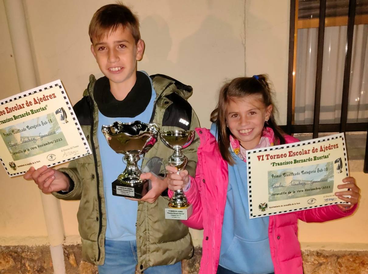 Los hermanos y ajedrecistas Hugo y Carla Sánchez Guerrero representaron a Zafra en el VI Torneo Escolar de Ajedrez 'Francisco Bernardo Huertas', en Jarandilla de la Vera, disputado el pasado 6 de noviembre con la participación de más de 60 jóvenes ajedrecistas.