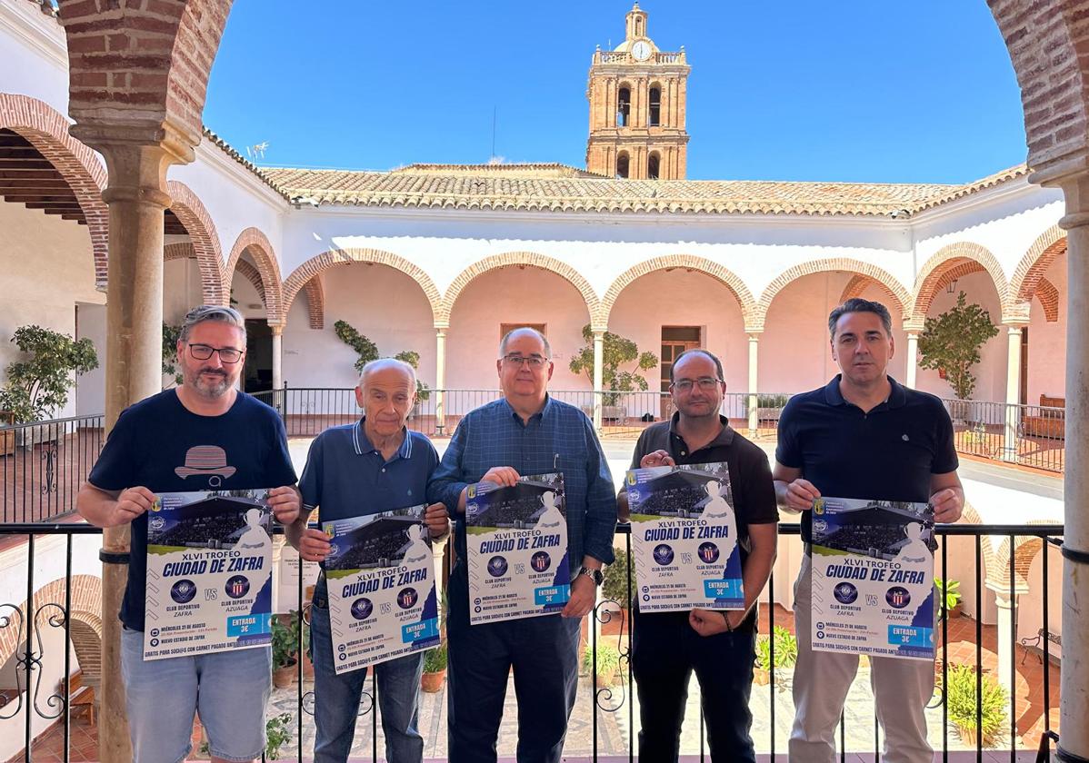 La presentación del trofeo se ha realizado en el Ayuntamiento de Zafra, con la presencia del alcalde, Juan Carlos Fernández; el concejal de Deportes, Javier Domingo Jaramillo; el secretario del club zafrense, Paulino Croche y los miembros de la junta gestora del mismo, José Luis Rodríguez y Carlos Pavón.
