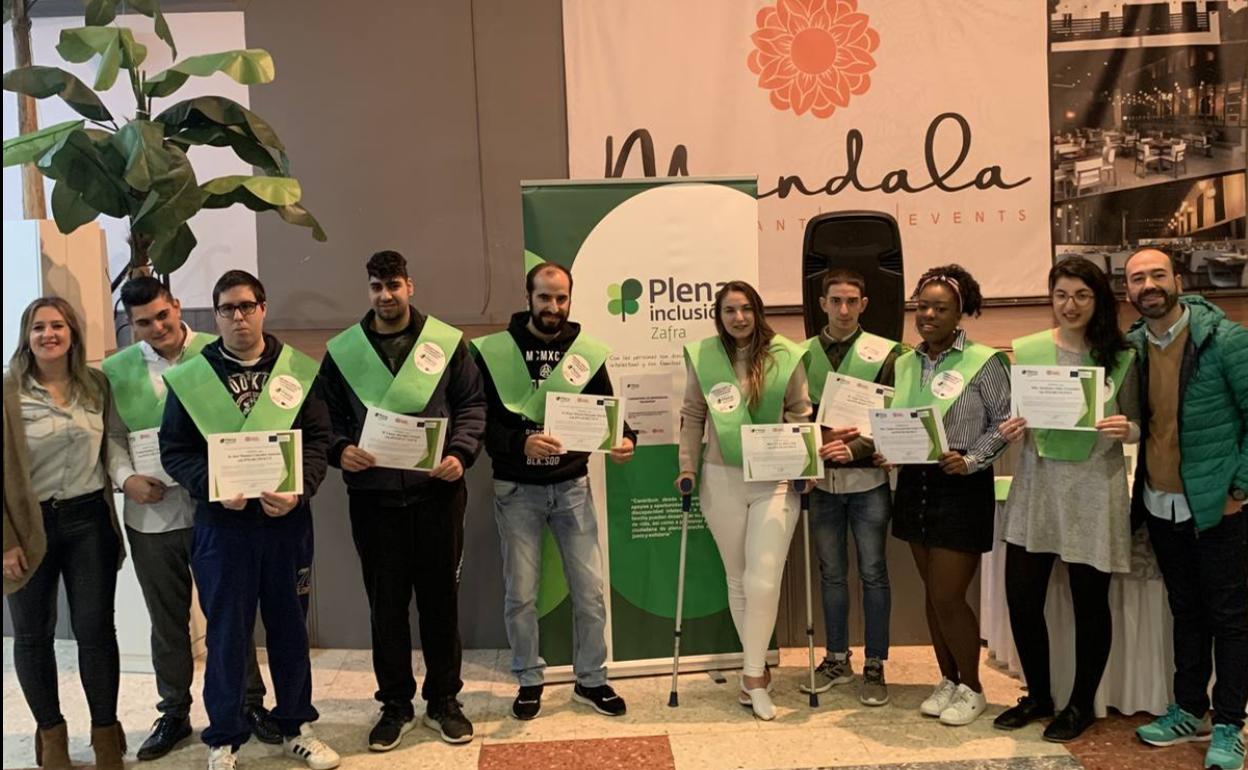 El objetivo es potenciar la incorporación socio laboral de jóvenes menores de 30 años con discapacidad intelectual que se encontraban desempleadosPlena Inclusión Zafra clausuró oficialmente el curso 'Laboratorios de Experiencias Culinarias', cofinanciado por la Fundación ONCE y el Fondo Social Europeo a través del programa ' ... Uno a Uno. POEJ 2019'. Los 10 alumnos que han participado en este proyecto recibían este martes 17 de diciembre su diploma acreditativo y su beca en un acto celebrado en el restaurante Mandala.
