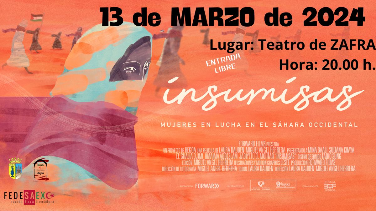 La programación conmemorativa del día Internacional de la Mujer continúa en Zafra hoy miércoles 13 de marzo con la proyección del documental 'Insumisas. Mujeres en lucha en el Sáhara ocupado'. Será en el Teatro de Zafra, a las 20 horas, con entrada libre.