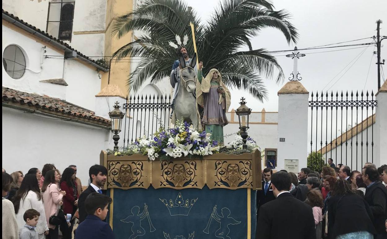 La imagen de Jesús sobre el pollino se estrenó en 2009, tras ser tallada y policromada por el imaginero sevillano Álvaro Flores Rojas. En 2016 se amplía el misterio con la incorporación de una nueva imagen. Informan desde la Junta Superior de Cofradías que el Paso de La Borriquita, aunque inconcluso, es una «escenificación digna» de la entrada de Cristo en Jerusalén.