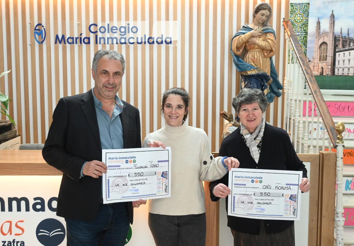 El Colegio María Inmaculada ha hecho entrega de los cheques a la Fundación Oncológica Infantil Ícaro y a la ONG Korima Claretianas, ambas con sede en Zafra