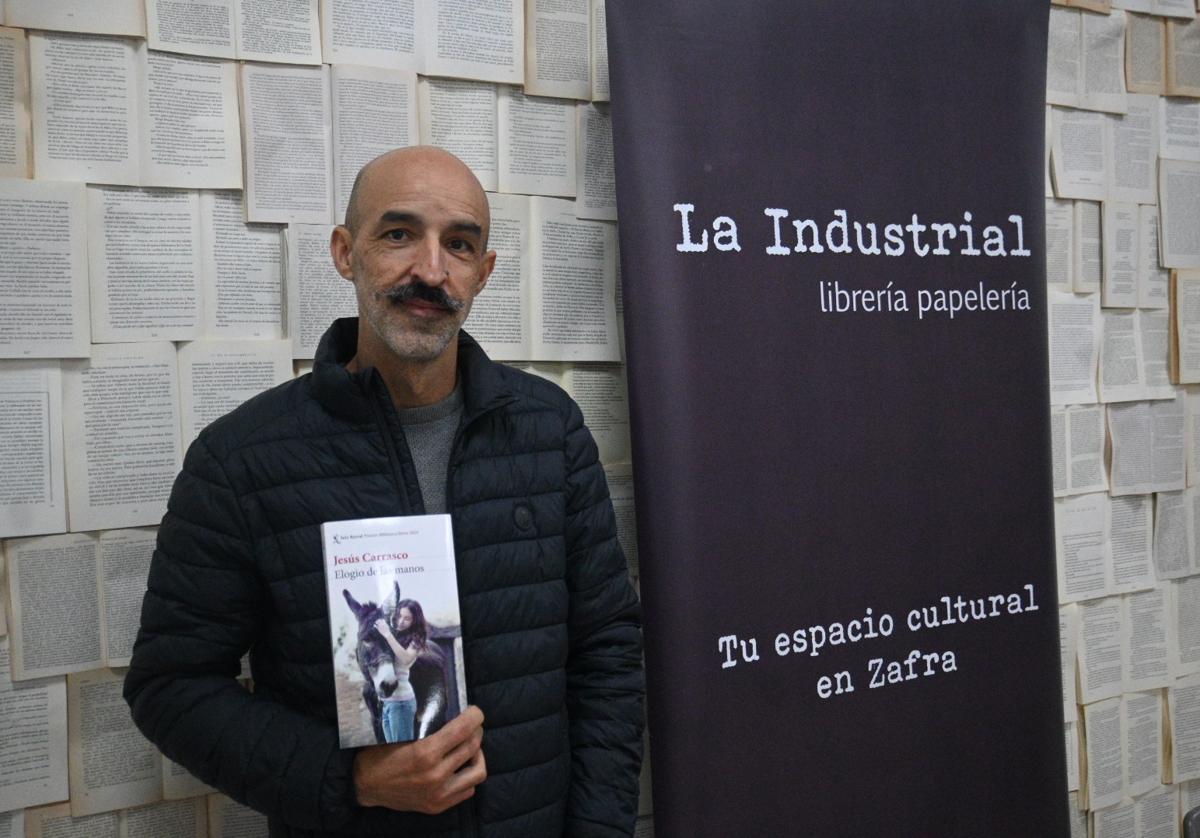 El novelista extremeño Jesús Carrasco presentó este pasado jueves 21 de noviembre su nueva novela 'Elogio de las manos', editada por Seix Barral, en la librería La Industrial de Zafra, ante numeroso público.
