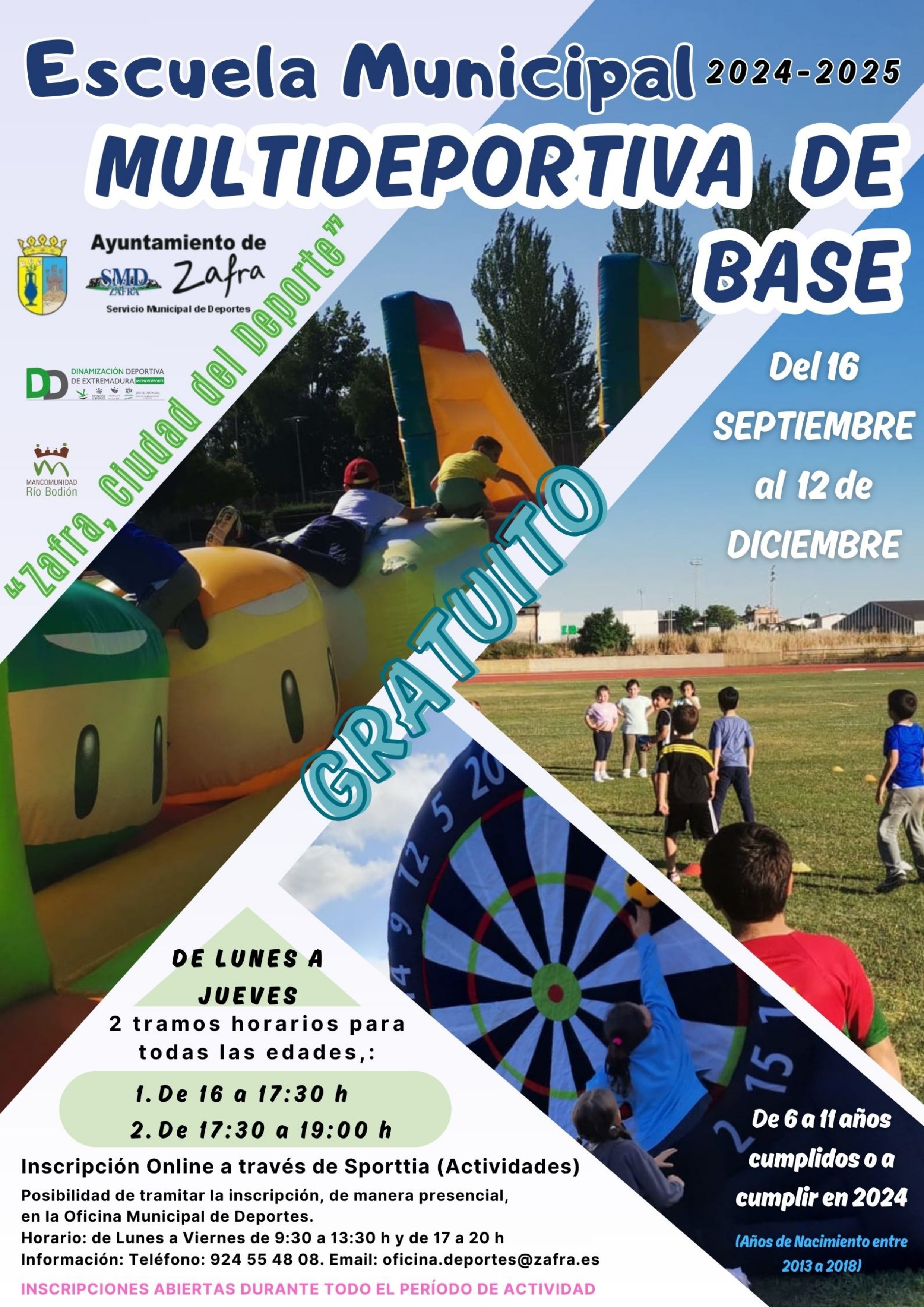 Las actividades de la Escuela Municipal Multideportiva de Base, organizadas por el Servicio Municipal de Deportes del Ayuntamiento de Zafra, darán comienzo el próximo lunes 16 de septiembre, una vez creados grupos mínimos.