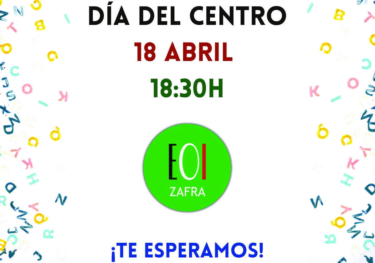 Desde las 18.30 horas se sucederán las iniciativas lingüísticas, charlas, poesía, concursos y músicaLa Escuela Oficial de Idiomas de Zafra celebrará este jueves, 18 de abril, su Día del Centro con distintas actividades abiertas a su alumnado y a toda la ciudadanía que quiera acompañarlos.
