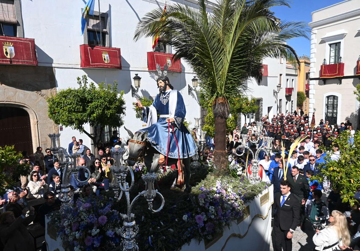 La procesión partió este año desde la Iglesia del Rosario, sobre las 10 horas, tras la bendición de las palmas. El patio y los alrededores del templo se llenaron de vecinos y visitantes que no quisieron perderse uno de los momentos más esperados del inicio de la Semana Santa: la emotiva salida del paso. Con destreza y bajo las órdenes de los capataces, los jóvenes portadores sacaron a la calle la imagen de Jesús, entre aplausos, vítores y alguna que otra lágrima, junto a los sones de la Asociación Musical Maestro Sousa (OJE), de Jerez de los Caballeros.