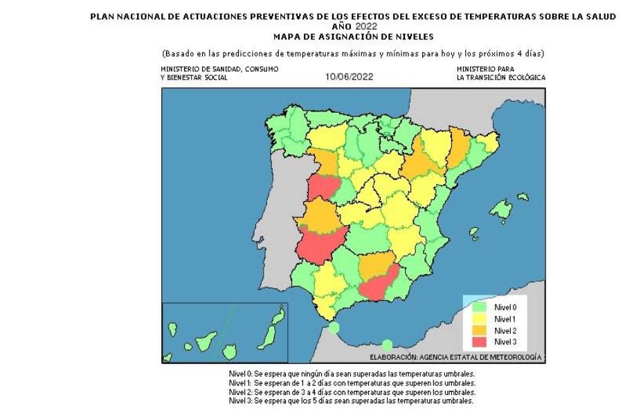 El Centro de Atención de Atención de Urgencias y Emergencias 112 ha activado desde este viernes 10 de junio e junio, y hasta el próximo ... domingo 12 de junio el nivel de alerta ROJO (alto riesgo) del Plan de Vigilancia y Prevención de los Efectos del Exceso de Temperatura sobre la Salud al prever que se superarán las temperaturas umbrales máximas y mínimas, y se espera superar los 40 grados.