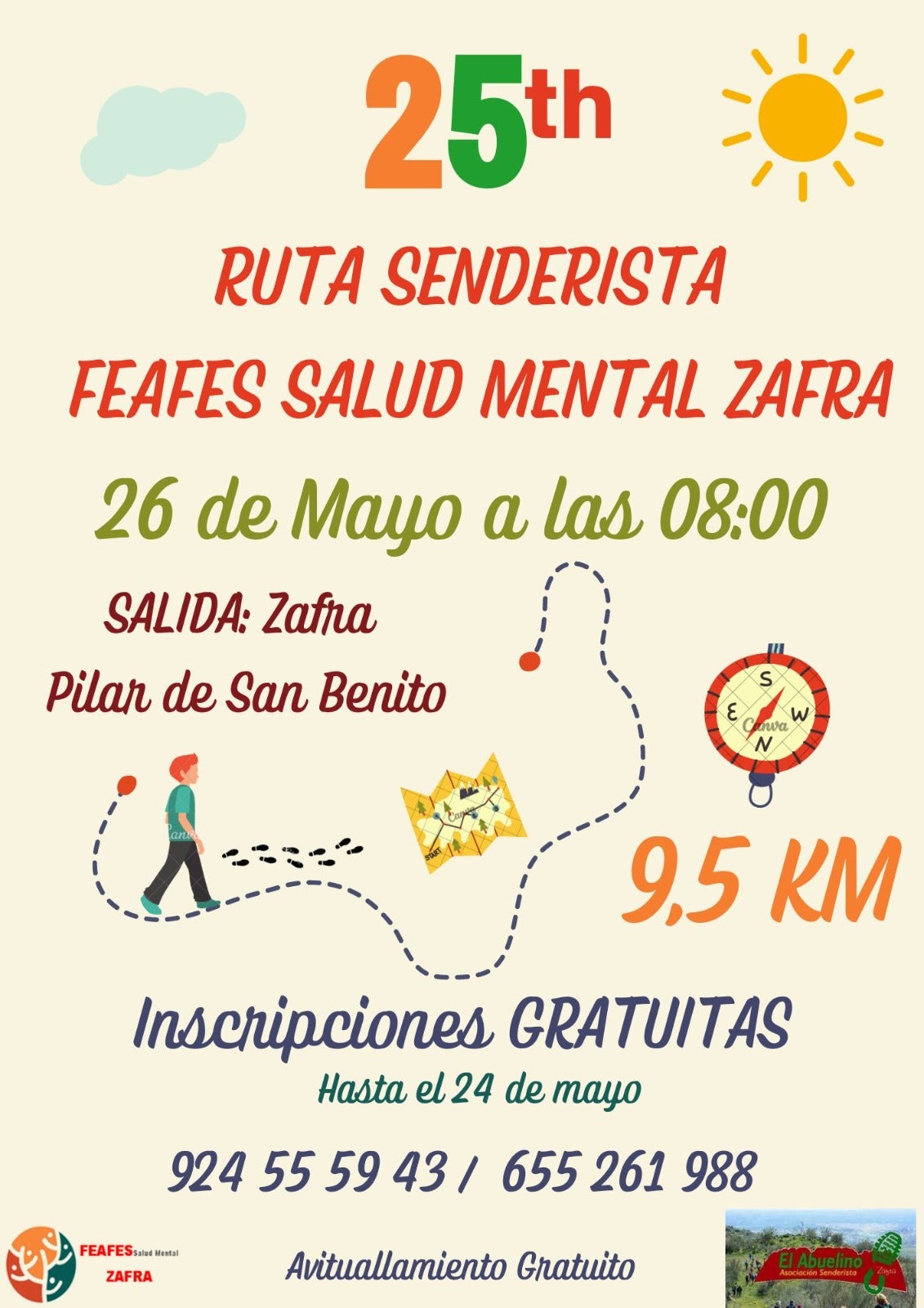 Feafes Salud Mental Zafra continúa con las actividades conmemorativas de su 25 aniversario. Para el próximo sábado, 26 de mayo, ha organizado una ruta senderista, ... abierta a todo el público que quiera realizarla, en colaboración con la Asociación Senderista 'El Abuelino'.