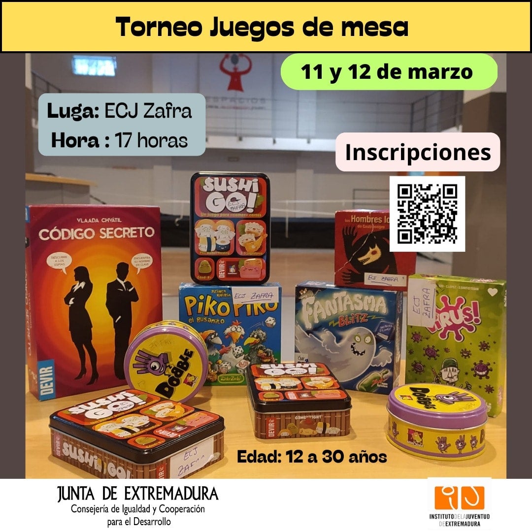 Está destinado a jóvenes de entre 12 y 30 años que durante la tarde disfrutarán compitiendo con juegos de mesa como Dobble, Sushi Go, Virus, Fantasma Blitz y Rummikub.