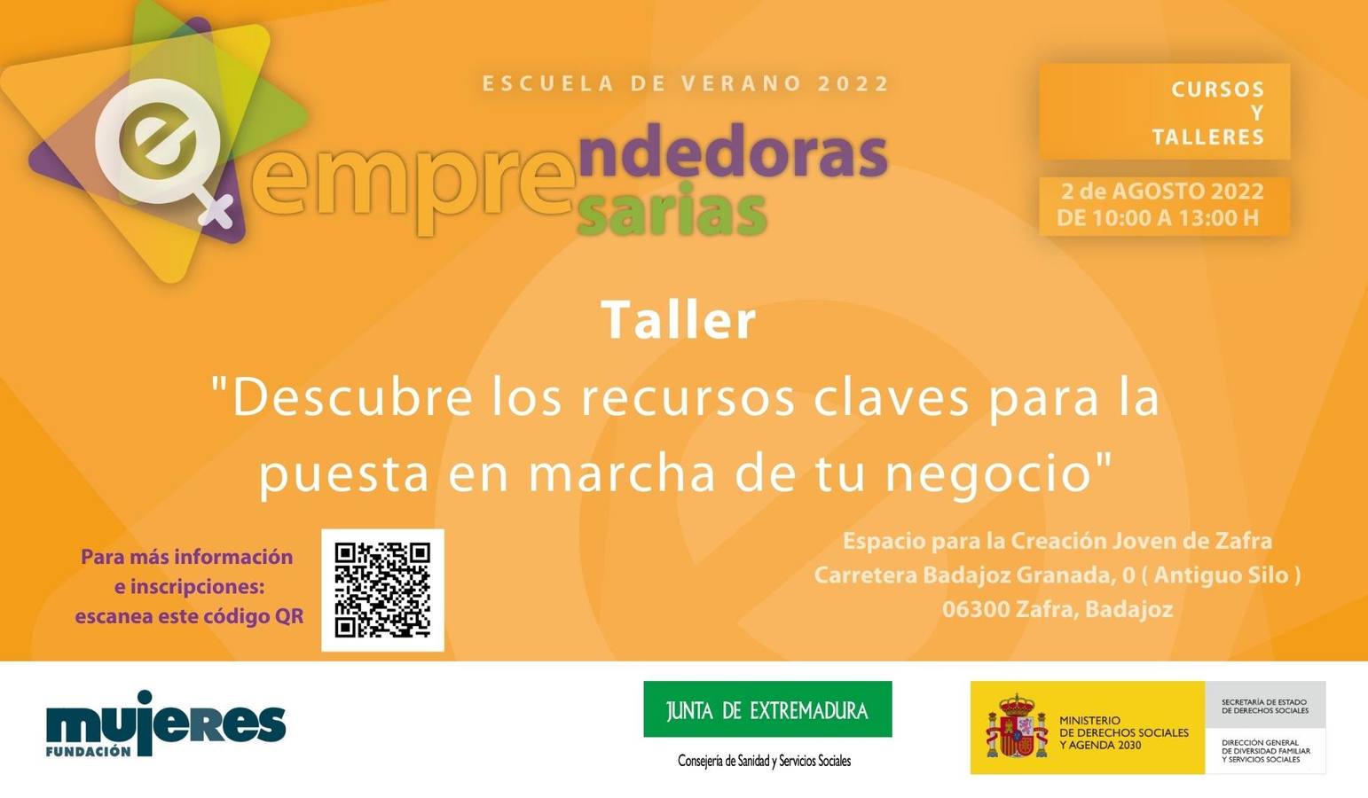 A través de este taller las participantes conocerán todos los recursos con los que cuentan en Extremadura para iniciar su proyecto de negocio, así como las ayudas y subvenciones que están en marcha para el emprendimiento en el marco del Plan de Recuperación, Transformación y Resiliencia.