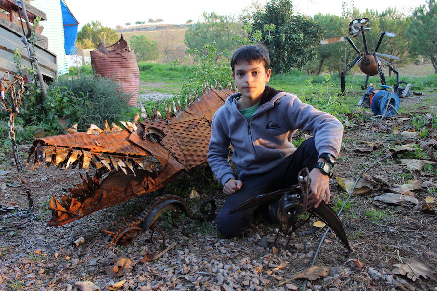 Luca García, de 14 años, expondrá en el teatro de Zafra sus esculturas "Entrañas de Chatarra"