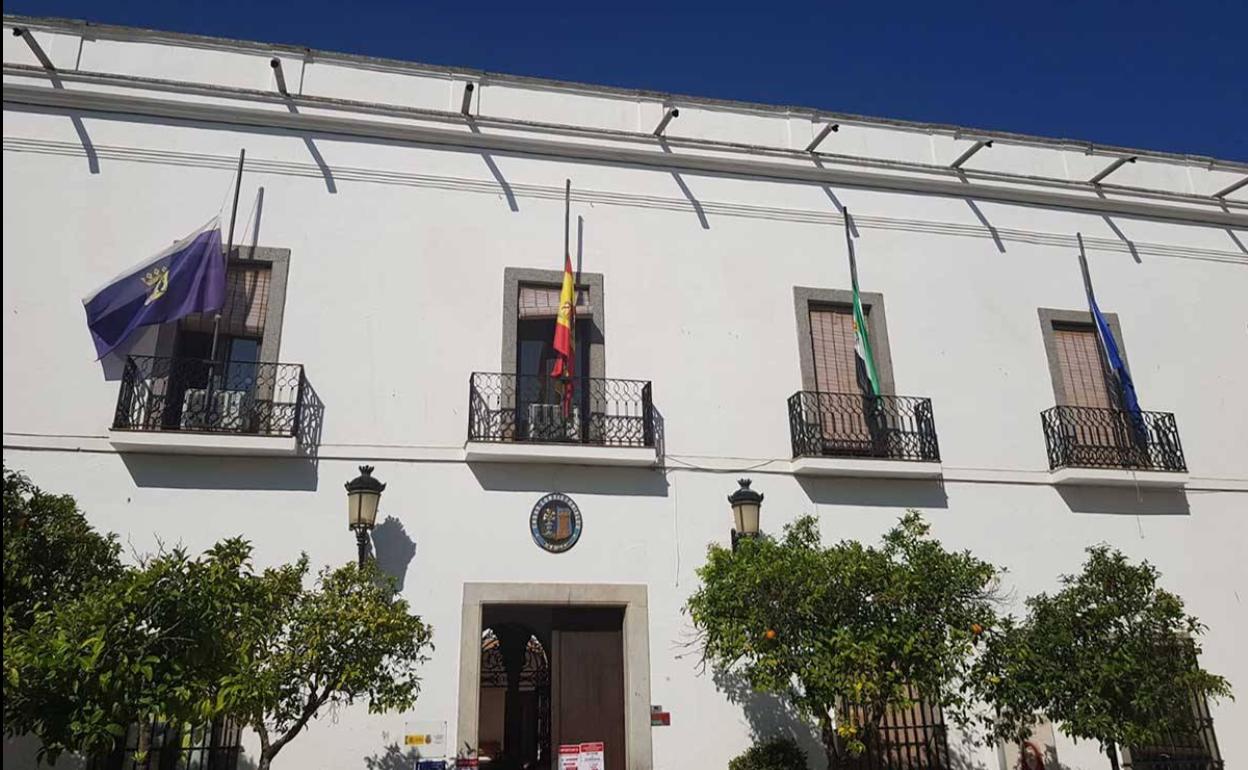 En Ayuntamiento de Zafra las banderas ondean a media asta y se ha puesto un lazo negro en la web municipal como muestras de condolencias a los fallecidos por el coronavirus.