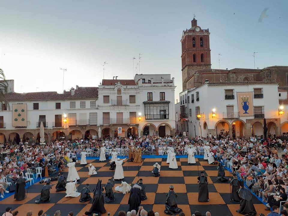 La actuación corrió a a cargo de la compañía de artes escénicas Exteatro, en colaboración con la Agrupación de Ajedrez Ruy López. Las piezas vivientes son las protagonistas en una historia de lucha entre los reinos negro y blanco. La partida se saldó con la victoria del reino blanco, de la mano de su reina.