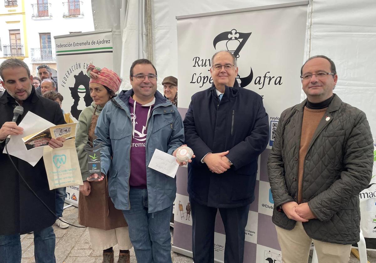 A la entrega de los premios asistieron el alcalde de Zafra, Juan Carlos Fernández, junto con el concejal delegado de Deportes, Javier Domingo Jaramillo, y el presidente de la Agrupación de Ajedrez Ruy López y organizador del evento, Daniel Gragera.