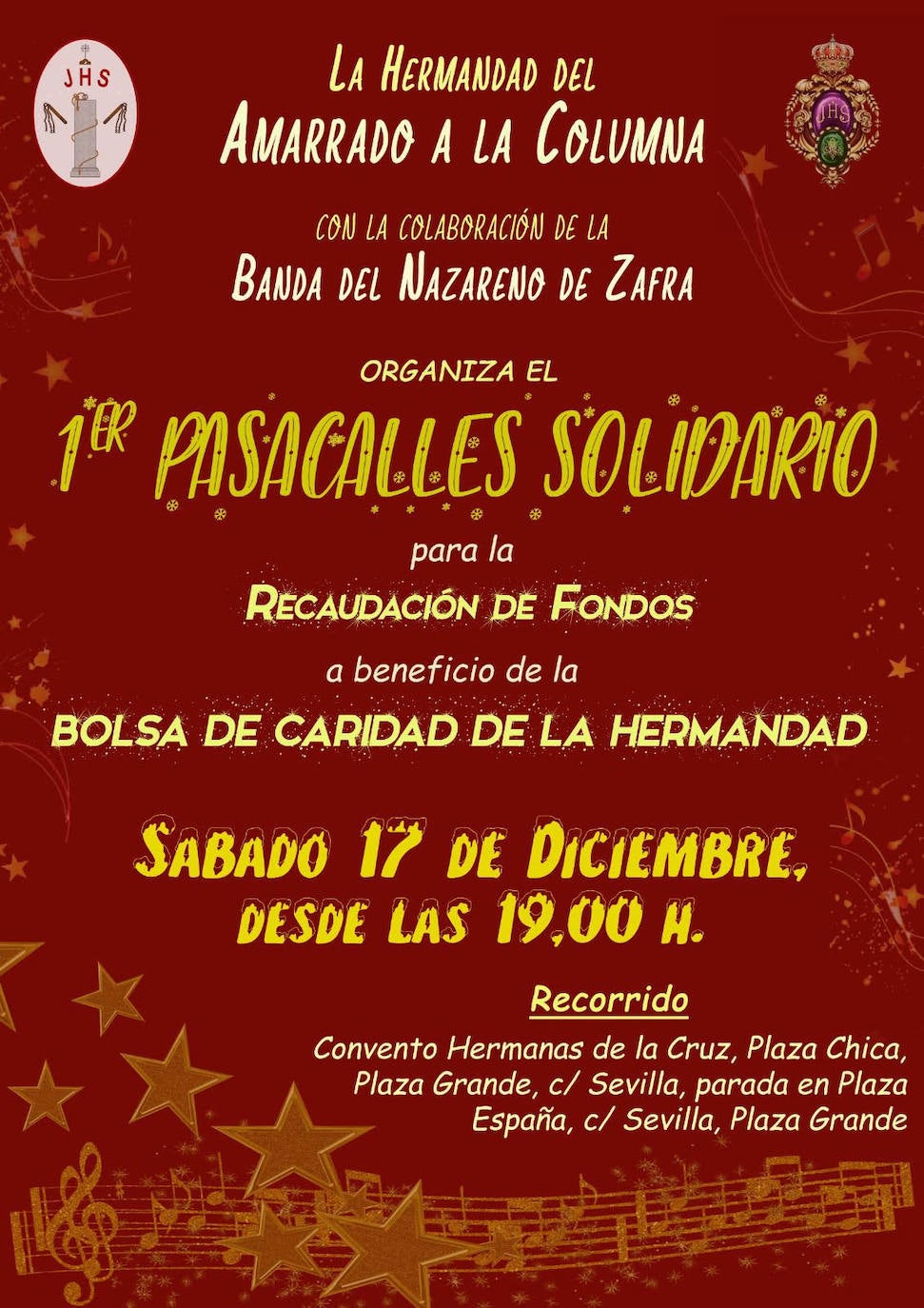 La Hermandad del Amarrado a la Columna, en colaboración con la Banda de Cornetas y Tambores del Nazareno y la Esperanza, ha organizado por primera ... vez este sábado 17 de diciembre, a partir de las 19 horas, un pasacalles solidario por las calles de Zafra.