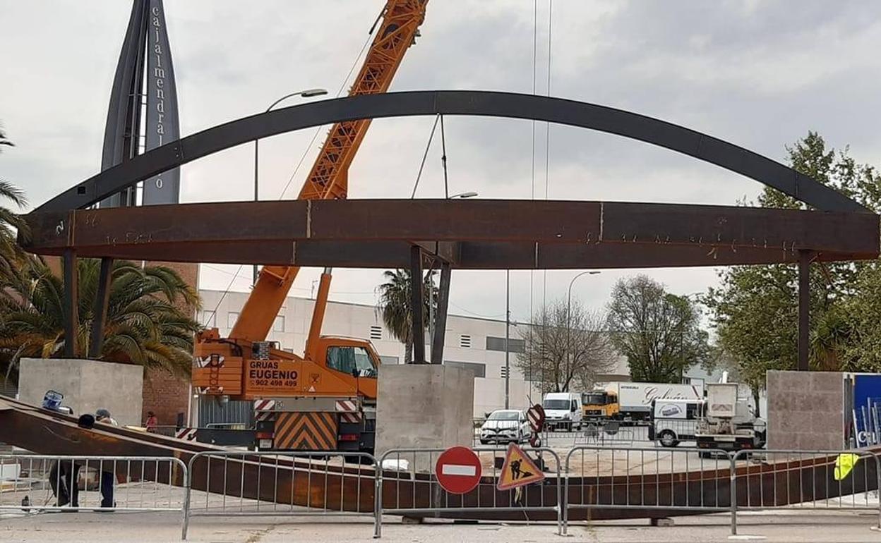 La instalación de la nueva portada del recinto ferial estará finalizada esta semana