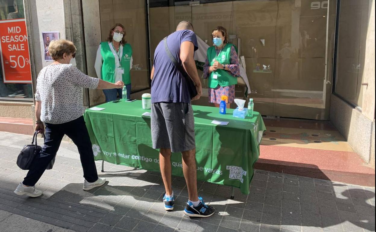 Debido a la situación sanitaria actual y cumpliendo con todas las medidas de seguridad, se ha instalado mesa física, sobre la mesa solo están las huchas, que se desinfectan continuamente y esta vez no se han podido colocar las pegatinas.