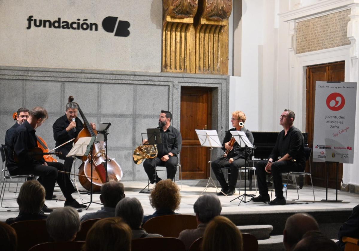 Después los asistentes pudieron disfrutar del primero de los conciertos de esta temporada, a cargo del Septeto de Viento y Cuerda, del proyecto Eritheia, formado por Luis Miguel Montero (clarinete), Francisco López (trompa), Arnau Coma (fagot), Branislav Sisel (violín), Gonzalo Castello (viola), Álvaro Serrano (chelo) y Francisco Lobo (contrabajo). Interpretaron piezas de los músicos Richard Strauss y Beethoven.