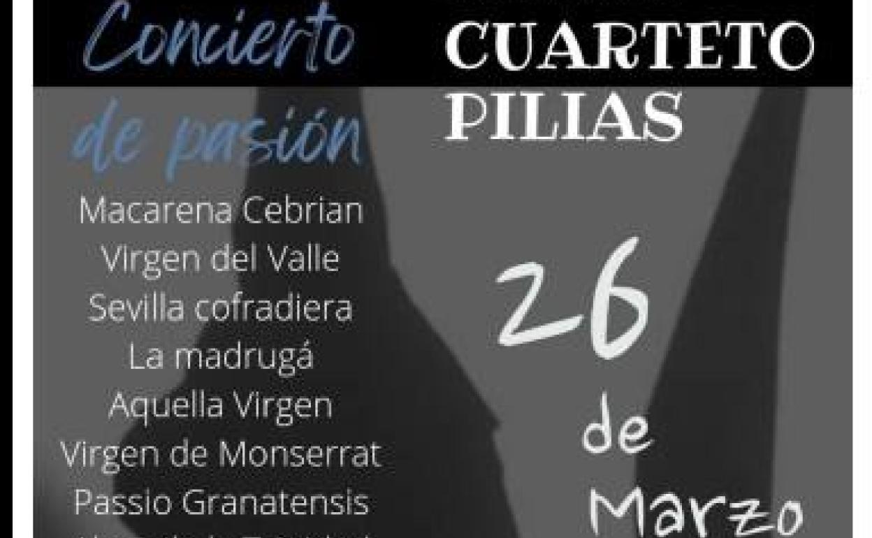 Es espectáculo lleva por título 'concierto de Pasión' y el cuarteto interpretará las composiciones como Macarena Cebrian, Virgen del Valle, Sevilla Cofradiera, La Madrugá, Aquella Virgen, Virgen de Montserrat, Passio Granatensis y Alma de Trinidad.