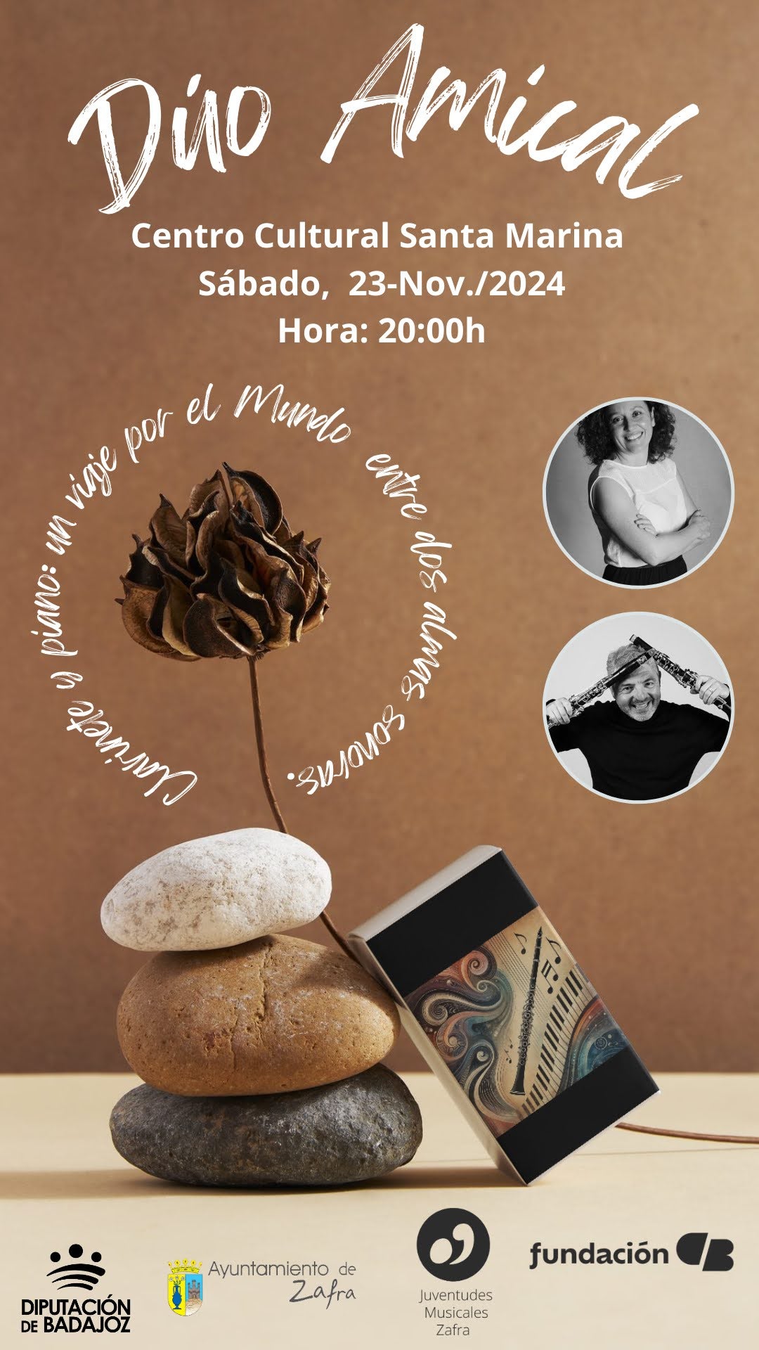 Amical Dúo (clarinete y piano) traerá este sábado 23 de noviembre, a las 20 horas, al Centro Cultural Santa Marina, las músicas del mundo durante el tercer concierto de la temporada de Juventudes Musicales de Zafra José Cabezón.