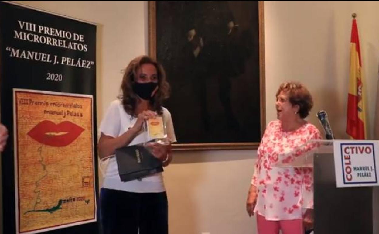 Margarita del Brezo recogió agradecida el VIII Premio de Microrrelatos del Colectivo Manuel J. Peláez