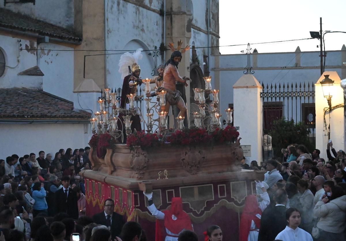Sobre las 20.30 horas, se abrían las puertas de la Iglesia del Rosario, ante multitud de personas que aguardaban con expectación la salida de la procesión. Tras la cruz de guía, un mar de capas rojas inundó los alrededores y, tras ellas, el paso de misterio, que representa el momento de la flagelación de Jesús. Con vítores y aplausos por el trabajo de los costaleros y capataces, el público recibió al 'Amarrao', que echó a andar a los sones de la Banda de Cornetas y Tambores de Nuestro Padre Jesús Nazareno y María Santísima de la Esperanza de Zafra.