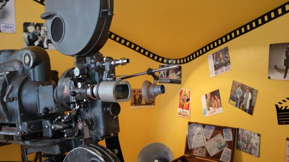 Un rincón de cine en el hall del Teatro de Zafra que recupera parte de la historia del séptimo arte de la localidad