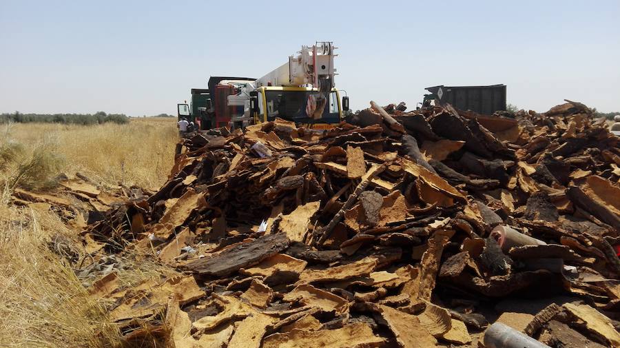 El incidente ha consistido en una salida de vía de un camión en la carretera de Zafra a El Raposo a la altura del cruce con las vías del tren a las 7.00h de la mañana. Concretamente en el punto kilométrico 71.600