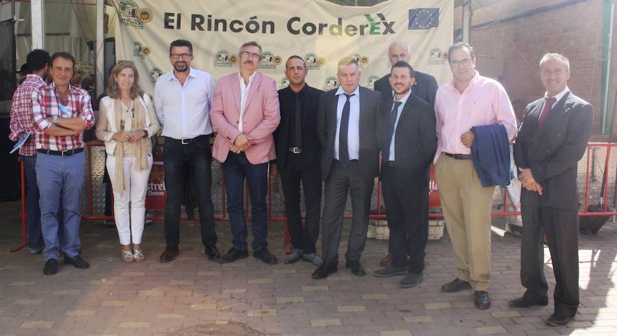 Cordero de Extremadura, CORDEREX, se ha reunido esta mañana en la Feria de Zafra con una delegación de supermercados italiano, Gigante, y con otros delegados de Portugal para poder ver cómo se crían estos animales y su transformación.